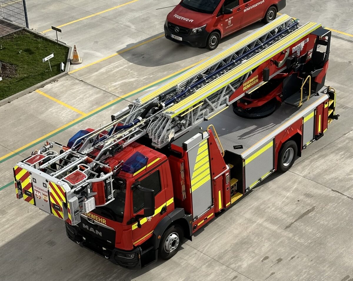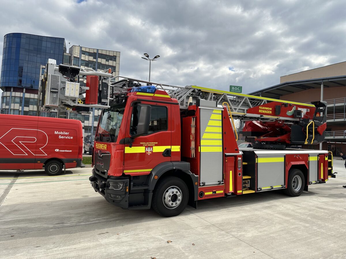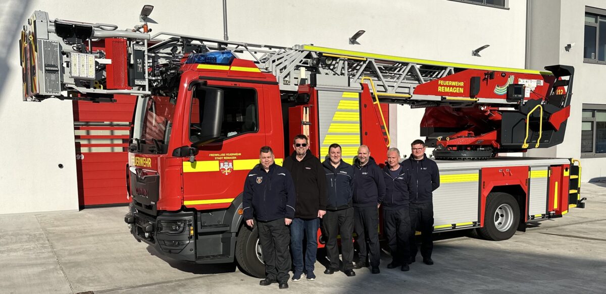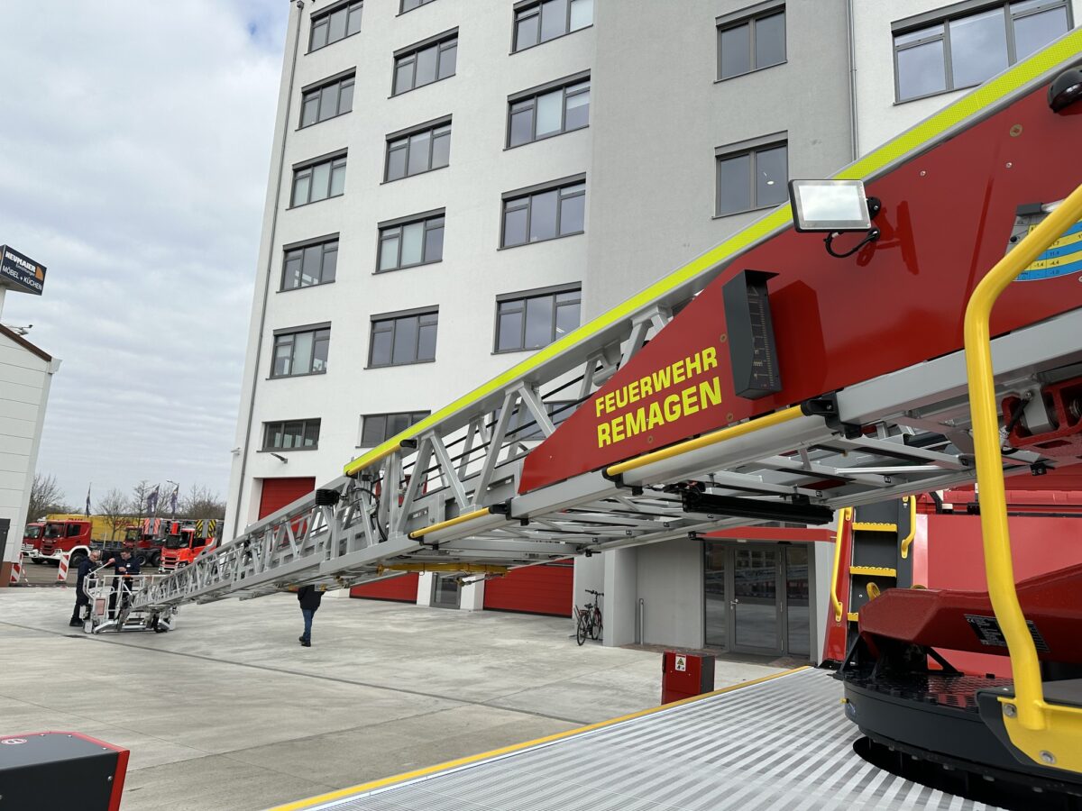 Die neue Drehleiter wird zukünftig bei der Feuerwehr Remagen stationiert sein und von dort aus auch Einsätze in beiden Kommunen übernehmen. Vor Ort im Werk wurde das Fahrzeug von den Kameraden der Feuerwehr Remagen und Feuerwehr Sinzig auf Herz und Nieren getestet. Anschließend folgte eine umfassende Einweisung durch die Trainer von Rosenbauer Group.