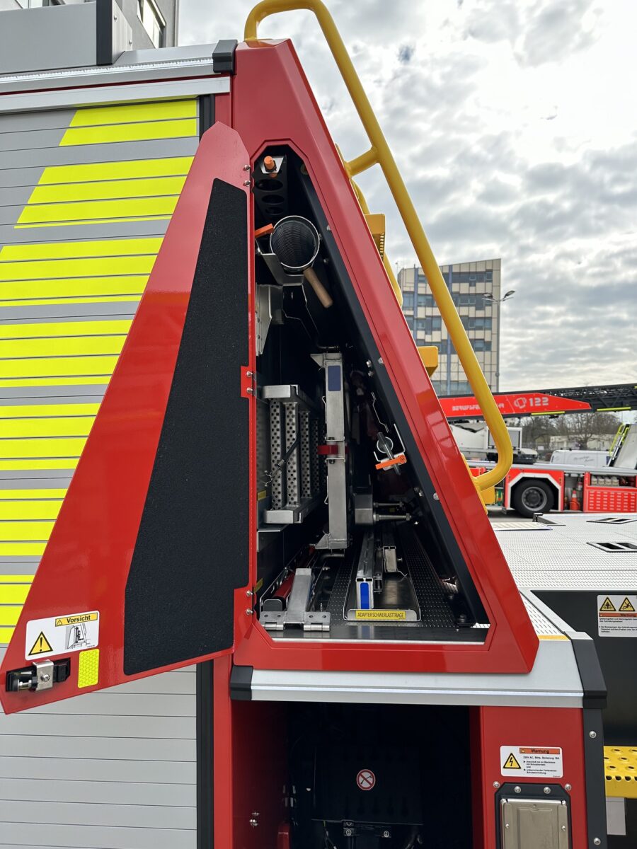 Mitte März fand bei Rosenbauer in Karlsruhe die Fahrzeugabnahme der neuen L32 A-XS Drehleiter mit Gelenkteil und 5-Mann-Korb statt – begleitet von unserem Außendienstmitarbeiter Christian Engelberg.