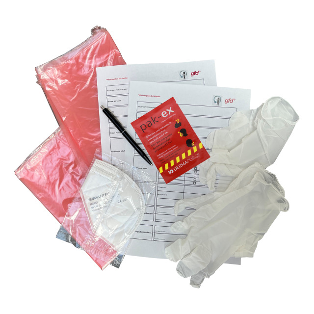 - 1 Sachet Hautreinigungsgel pak-ex, 15 ml, zur Entfernung von Schadstoffen auf der Haut